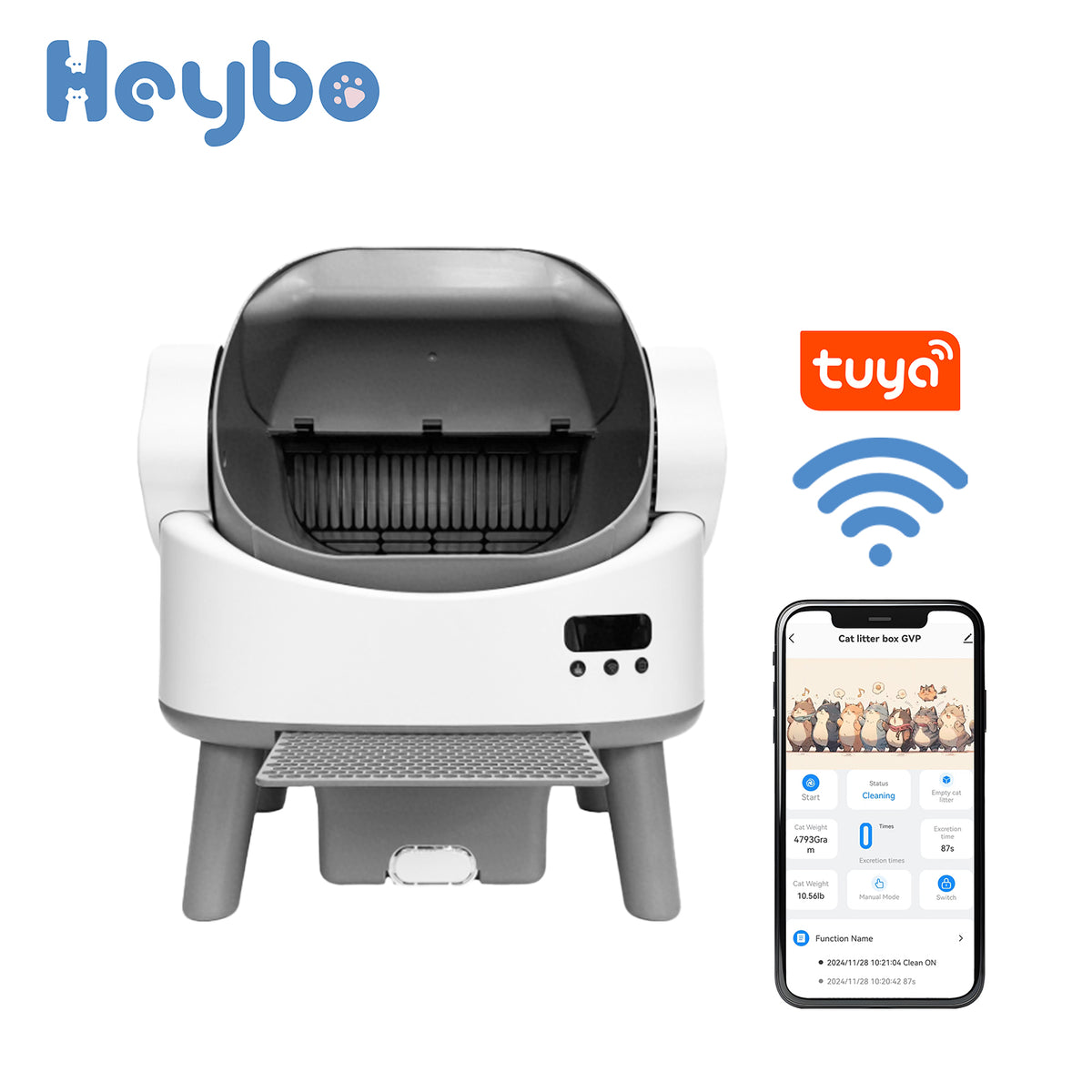 The HBZH-ICB-15 offers the core benefits of Heybo's open-top smart litter box technology in a more compact footprint. Ideal for smaller living spaces while maintaining the same high standards of safety and Tuya Smart connectivity.